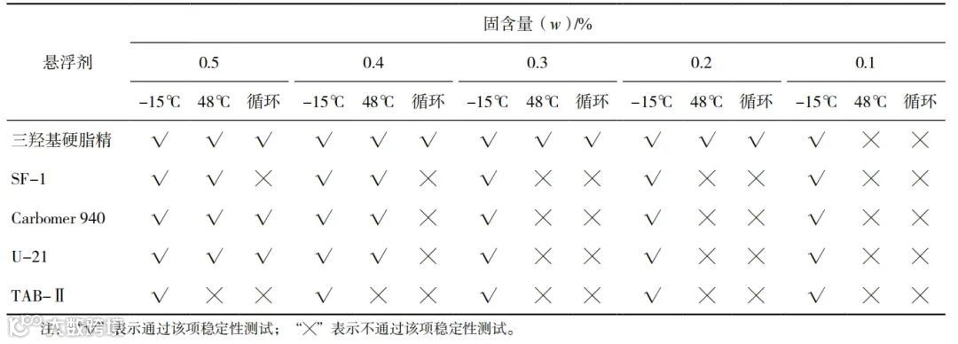 同时,三羟基硬脂精在5种悬浮剂中成本最低,且应用工艺简便。