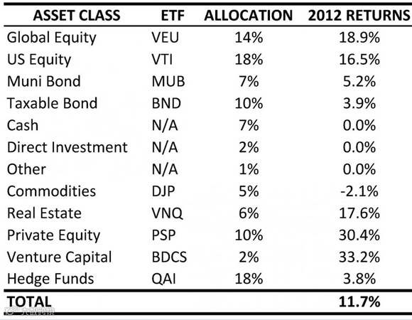如果用index-likeETF来重建上述投资组合,你得到的2012年收益率是11.7%。也就是说,你只要花两分钟挑选购买一些普通基金,就可以多赚340万美元。