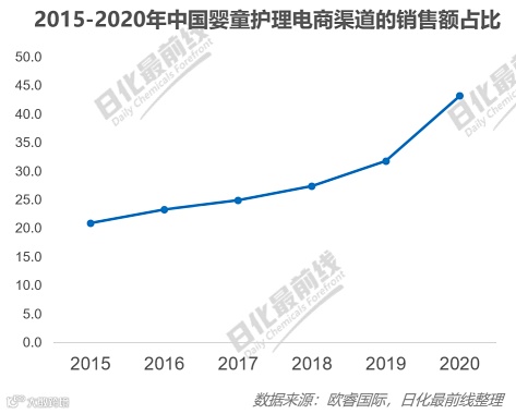 对于针对婴童护理产品,电商渠道占有较高的份额,2020年的市场份额超过40%,增速迅猛;