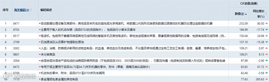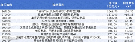 图14 2025年1-12月份美国进口TOP10商品情况