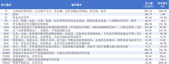 2025年美国自瑞士进口的大涨本质上是贵金属(金)的单一商品集中交付所致,而非瑞士对美出口能力的普遍提升。而其他行业多数负增长或微增,这意味着剔除贵金属后,美国自瑞士的常规商品进口实际上处于萎缩状态。美国进口需求在瑞士进口黄金及贵金属制品需求激增,而高附加值的钟表、生物药品、精密医疗仪器需求同步走弱。反映出2025年美国资本倾向于保值资产,而可选消费品和部分高端医疗产品则受需求收缩冲击。同时,药品内部分化,美国对特定治疗领域的进口依赖正在重新配置。