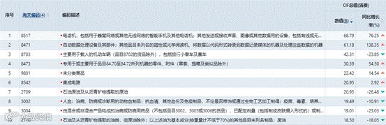 图13 2025年1-12月份美国进口前十的具体产品情况(B:十亿美元)