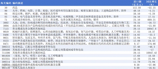“药品”行业进口额112.58亿美元,同比下降32.25%,是新加坡对美出口的最大品类,但其萎缩直接拖累整体进口。“人血、抗血清及免疫制品”同比下降38.72%;“由混合或非混合产品构成的药品”同比下降15.88%。“免疫制品已配定剂量”同比下降46.30%,是药品下降的主因。而“混合的免疫制品未配定剂量”同比增长75.94%,“其他混合药品”同比下降17.00%,这一分化显示出,美国正在减少对成品药的直接进口,转而进口半成品原料进行本土分装,医药供应链的"近岸化"或"本土化"趋势明显。(如图6)