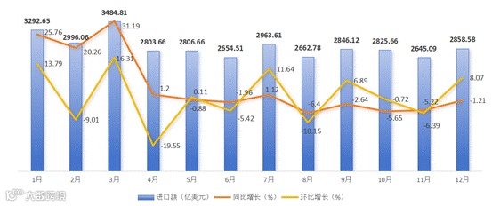 图1 2025年1-12月份美国进口总额同比月度走势