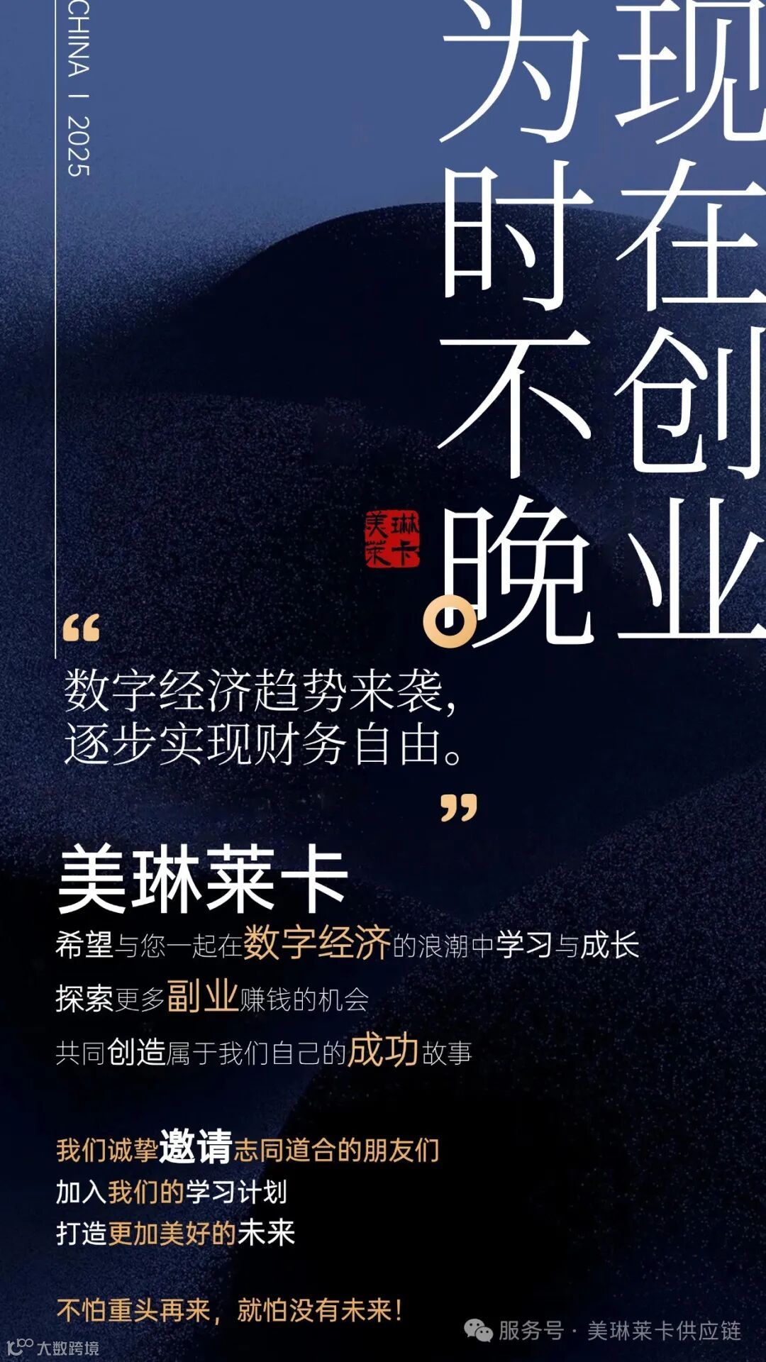 美琳莱卡团队希望与您一起在数字经济的浪潮中学习与成长,探索更多副业赚钱的机会,共同创造属于我们自己的成功故事。我们诚挚邀请志同道合的朋友们加入我们的学习计划,打造更加美好的未来。