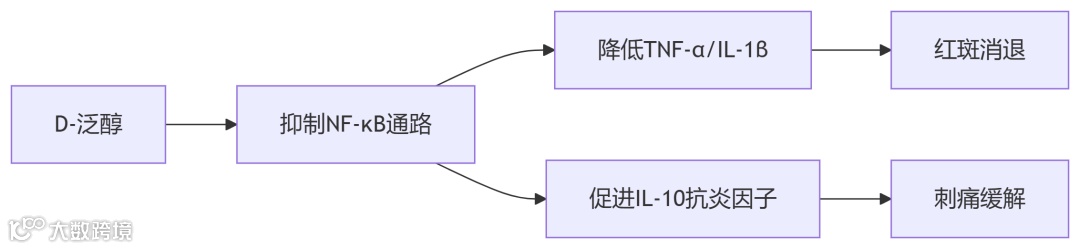 在尿布疹模型中,含 D - 泛醇的配方显著抑制 IL-1α 释放(抑制率 67.4%),减少红斑面积 。其机制与抑制炎症介质释放和增强屏障功能相关。