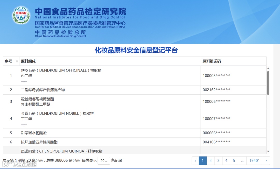 化妆品违禁词网创始人李锦聪也提醒道,“以前1开头的复配原料报送码,目前已经无法再使用。”据统计,化妆品原料安全信息登记报送平台中报送码共有388006条,其中近一半为复配原料报送码。