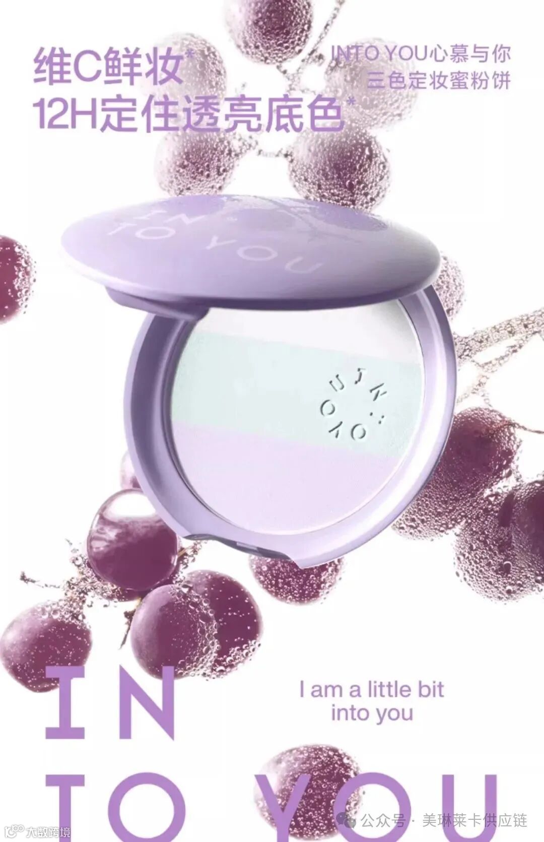 INTO YOU推出的三色定妆蜜粉饼便是这一趋势下的创新之作。该产品巧妙地融入了抗坏血酸棕榈酸酯成分,实现了“早C入妆”的独特理念,并承诺能维持12小时的透亮底妆。通过添加VC衍生物,该蜜粉饼在日间为肌肤提供抗氧化保护,成功地将“早C”成分的抗氧化功效与粉饼的定妆及抗暗沉特性融为一体,为消费者带来了全新的妆护合一体验: