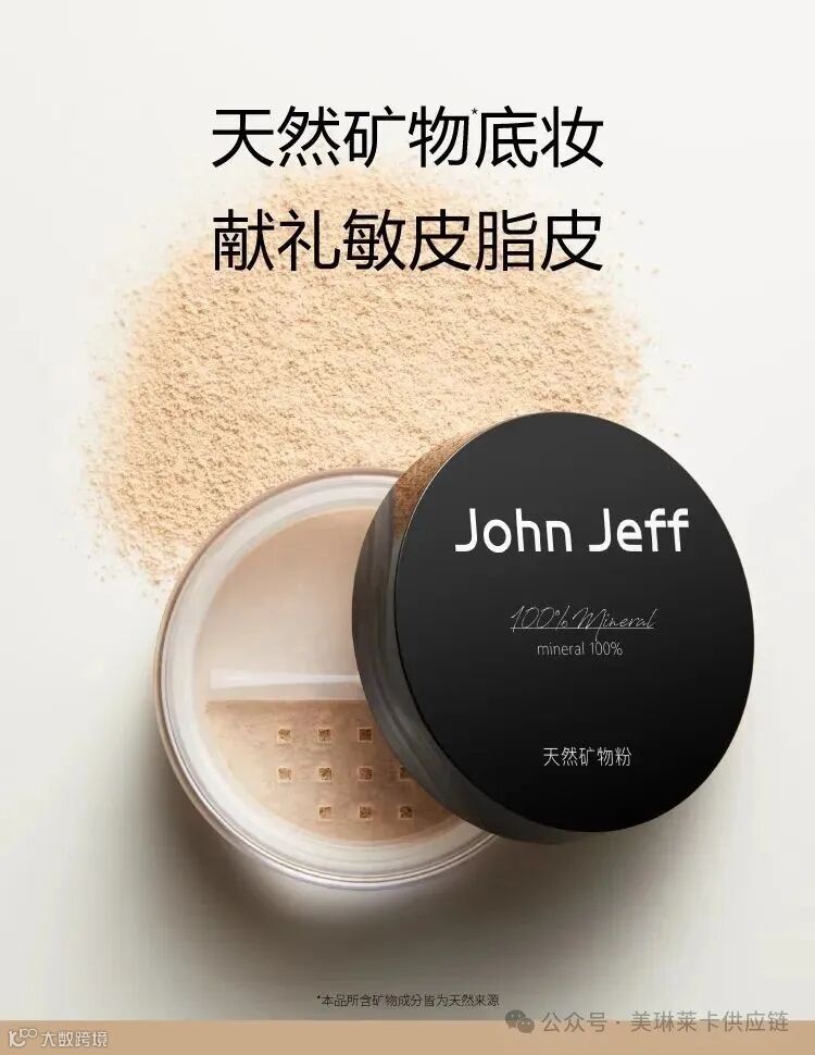 John Jeff 推出天然矿物粉,可代替粉底液使用,仅有6种天然矿物成分,脂皮敏皮可用,不闷痘,任意洁面可洗,无需卸妆。