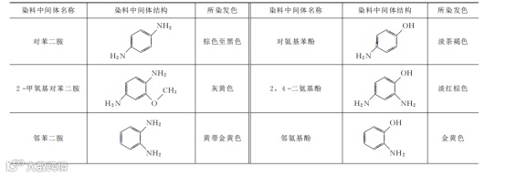 合成染发剂染发步骤的具体原理为:在碱性条件下,中间剂经过一系列反应在皮质层生成有色缩合物,从而改变发色。在碱性条件的作用下,对苯二胺等中间剂可以进入到头发皮质层的粗纤维和细纤维的角蛋白中,一端的氨基与头发蛋白作用,另一端则通过氧化剂与耦合剂相连,发生氧化和缩合反应,在这个过程中合成的不溶性的有色染料大分子,附着在头发上,使头发呈棕色至黑色。