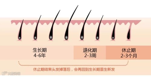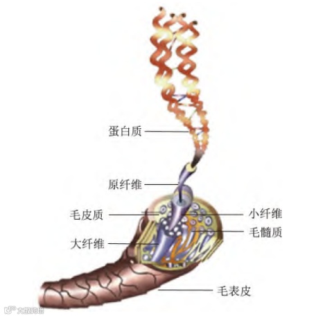 头发的生长在生长期和静止期之间呈周期性交替,通常约85%的头发处于生长期。头发主要是由角质蛋白 (keratin)分子组成的角质纤维通过右螺旋的方式相缠绕而成。