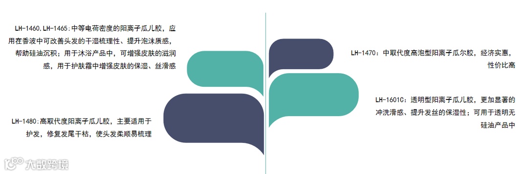 阳离子瓜尔胶应用在香波中可改善头发的干湿梳理性、提升泡沫质感,帮助硅油沉积;用于沐浴产品中,可增强皮肤的滋润感,用于护肤霜中增强皮肤的保湿、丝滑感。在头发和皮肤表面上易形成透气的薄膜,具有优良的保护作用。