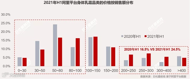 2021年上半年身体乳霜价格分布