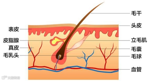 毛发是一个复杂的生物学单元,由看得见的发干和位于皮肤表面下的发根组成,发根又从毛囊长出。毛囊是由不同特定的上皮和连接组织层组成,被脉管结构、立毛肌及丰富的神经末梢包围。