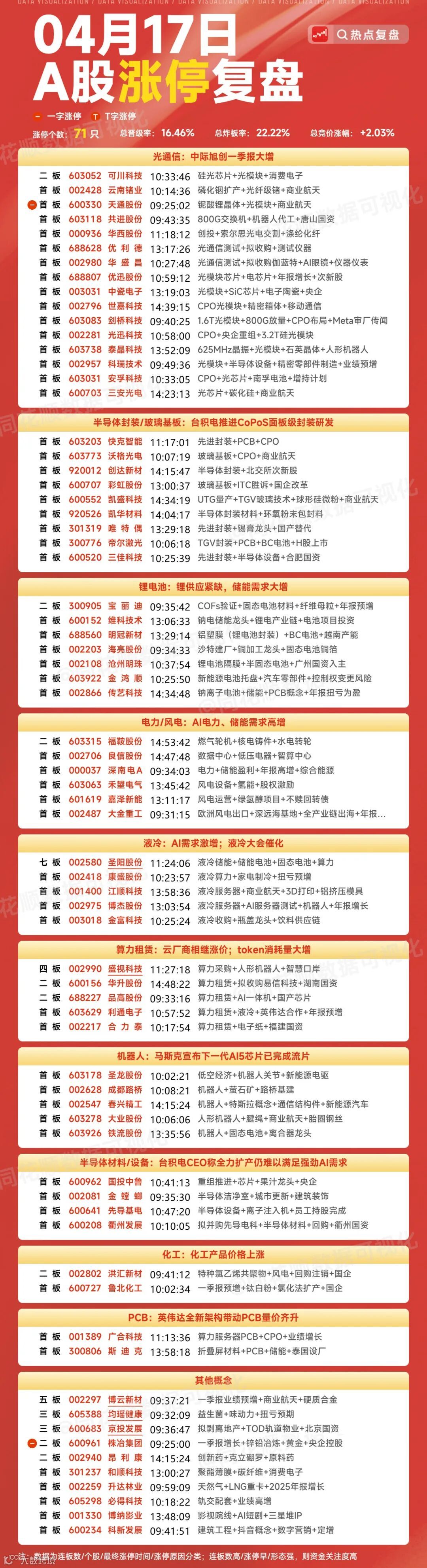 一、2026 年 4 月 17 日 A 股涨停复盘表