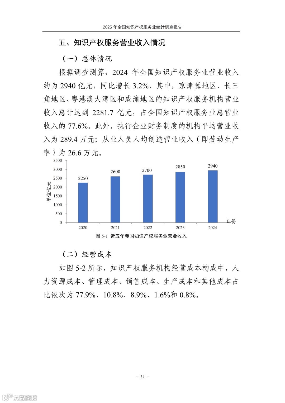 我国知识产权服务业总营业收入约为2940亿元,同比增长3.2%|《2025年全国知识产权服务业统计调查报告》全文发布