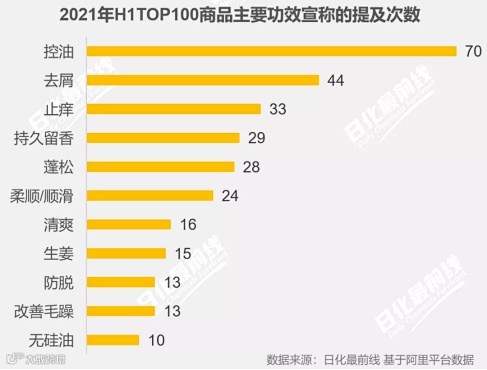 以控油、去屑、止痒为主是热销产品使用最多的市场功效宣称;