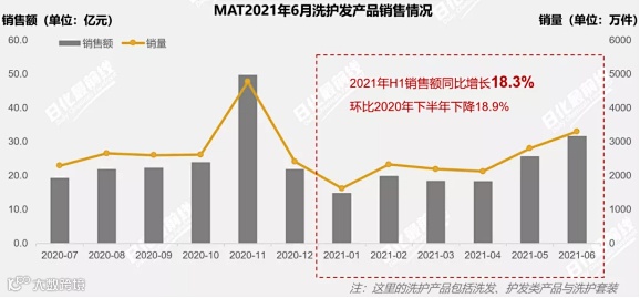 2021年上半年阿里平台洗护发产品销售额超过129亿元,销量突破1.4亿件。