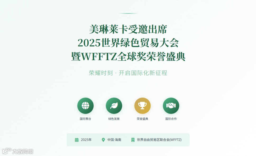 此次受邀出席2025世界绿色贸易大会,对美琳莱卡而言具有里程碑意义。这不仅是对平台过去成绩的认可,更是对未来发展的激励与鞭策。美琳莱卡将借助这一国际平台: