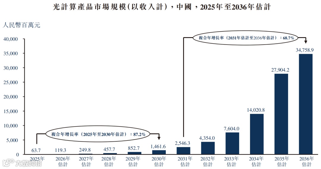 据弗若斯特沙利文数据,中国Scale-up光互连市场规模预计从2025年57亿元增至2030年1805亿元,复合增速近100%;光计算市场从不足1亿元增至2030年14.62亿元,增速超87%。长期看,光计算在AI推理芯片渗透率将从不足0.5%提升至2040年20%,空间超40倍。