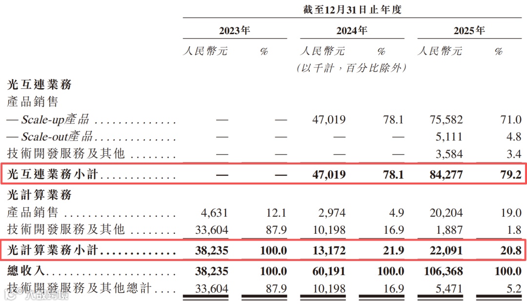 收入结构:光互连占近80%(Scale-up产品2025年收入7558万元);光计算为高增长第二曲线。
