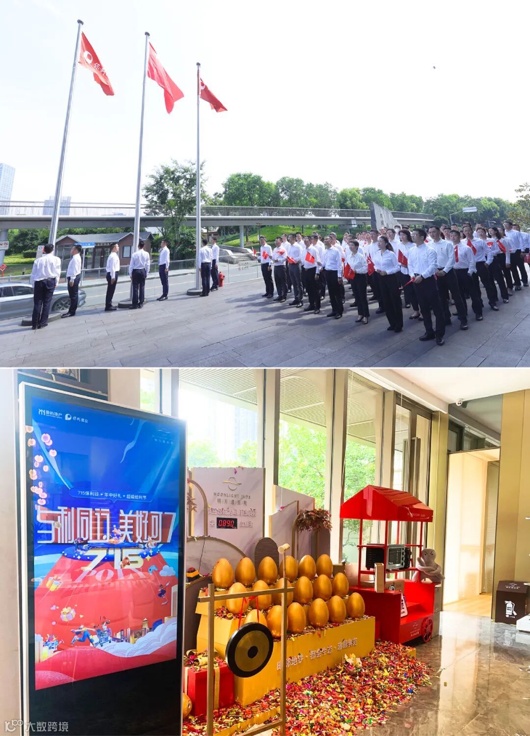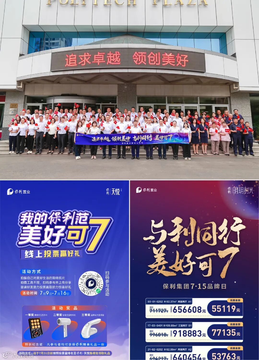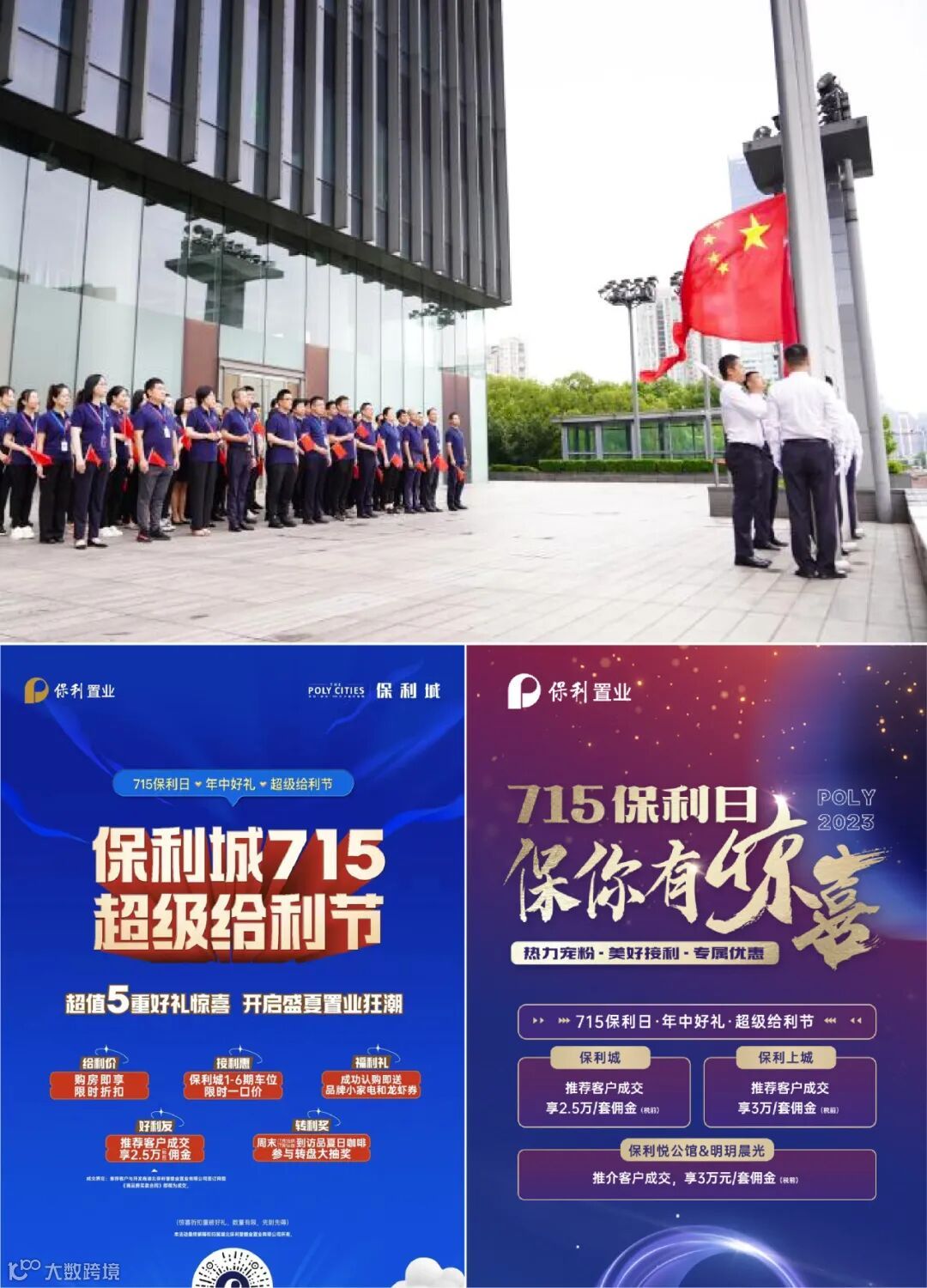 海量福利,惊喜加码。浙江公司线上全民征集活动,话题上线即热度爆表,吸引众多客户参与。同时,推出客户专属购房福利,助力保利幸福置业。线下组织了声势浩大的升旗仪式及录制视频等活动,7大项目案场实时观看715品牌之夜直播,用实际行动做好品牌文化传承者和示范者,同频共祝保利日。
