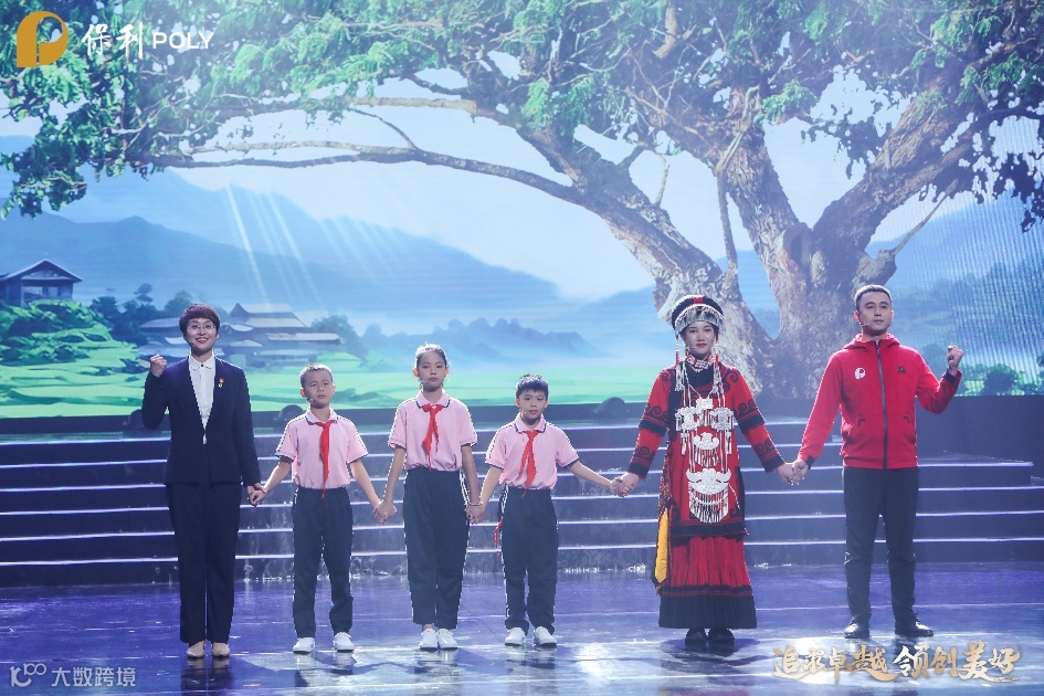 “7·15品牌之夜”现场,来自广西壮族自治区横州三榃村委小学的三名大山少年,代表“保利少年志”公益行动,参演保利社会责任主题节目《一个都不能少》。
