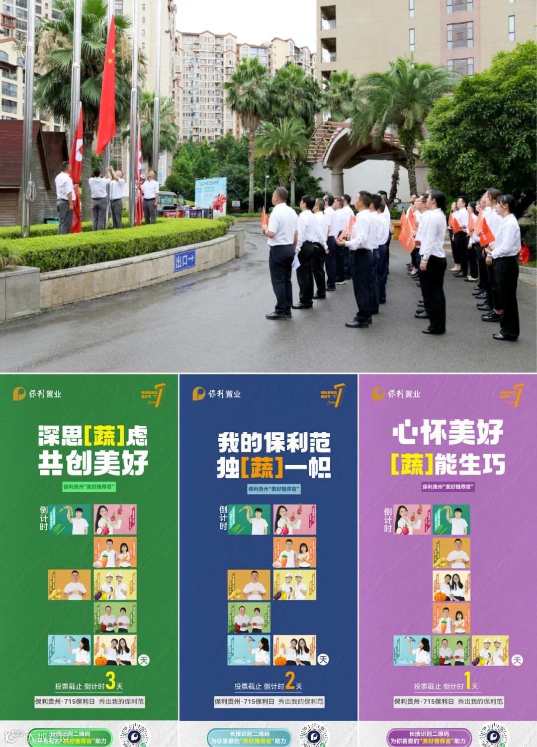 贵州公司组织开展了“7·15保利日”升旗仪式、“忆初心 谈使命”新老保利人座谈会,以及“我的保利范 美好可7”线上投票活动。阳光、活泼、俏皮、可爱的“美好推荐官”们热情拉票,争先恐后为品牌日宣传造势,共同传递保利品牌力量。线上留电累计3503个、投票人数3418人;总票数25579个、浏览次数31274个。