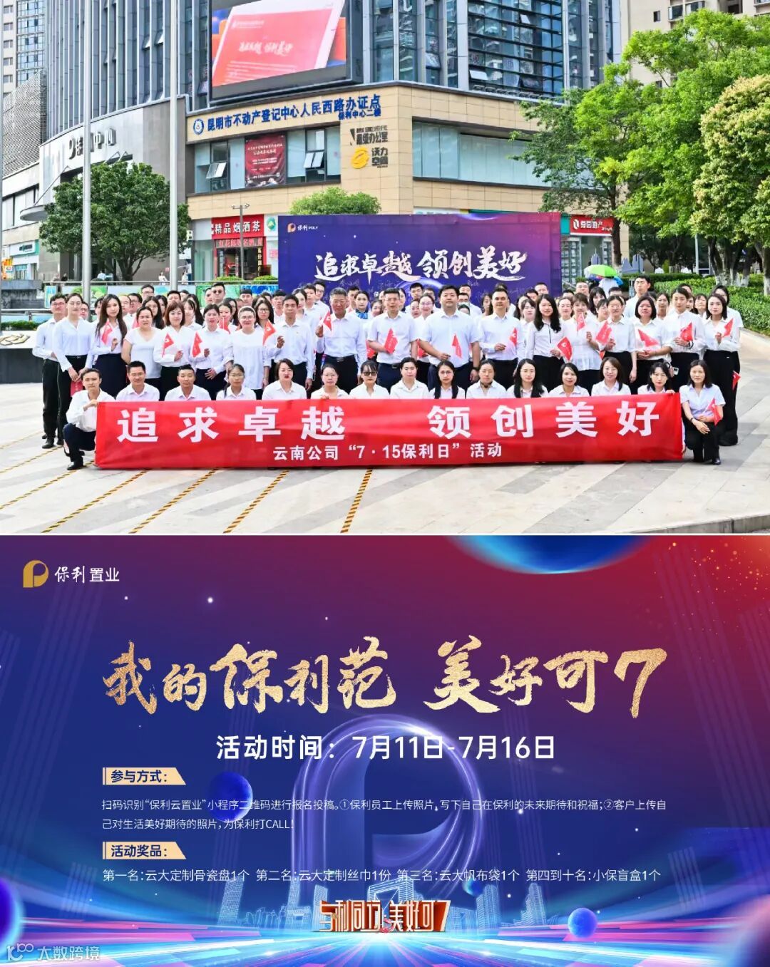 云南公司红盘线上线下联动,共庆“7·15保利日”。发起“我的保利范 美好可7”征集活动,邀请客户和员工上传对美好生活的期待与对保利的祝福。推出“超级给利节”专属优惠和答谢福礼,配合“715好房直播”,福利好房不断,人气居高不下。