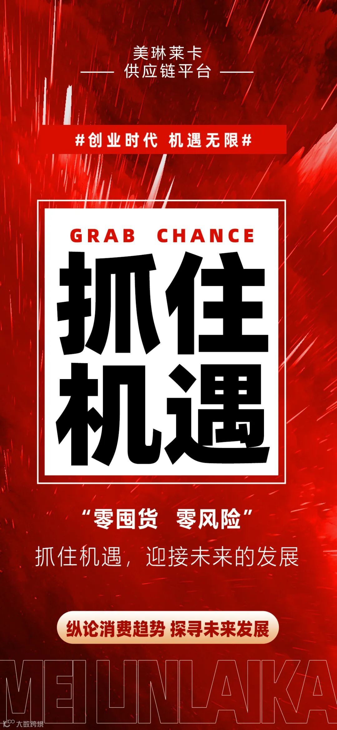 时代在变,机遇就在眼前。走进消费商时代,让我们一起抓住消费致富的新机遇,携手美琳莱卡,共创未来新财富!