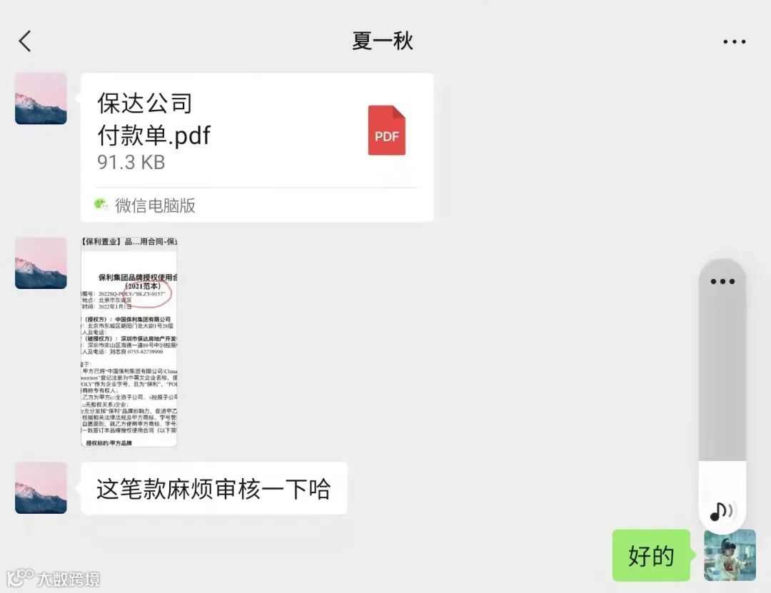 17:00 项目出纳将审批完成的拆迁进度款支付信息录入系统,微信通知陈秋敏进行复核,陈秋敏随后用U盾完成了这笔紧急付款,居家办公的工作效率丝毫不受影响。