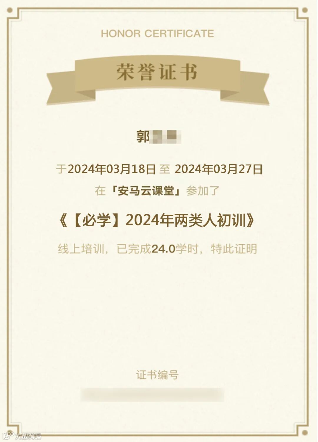 5、安马云“云课堂”《必学2024年两类人员线上课程》学时证明(截图打印)2份: