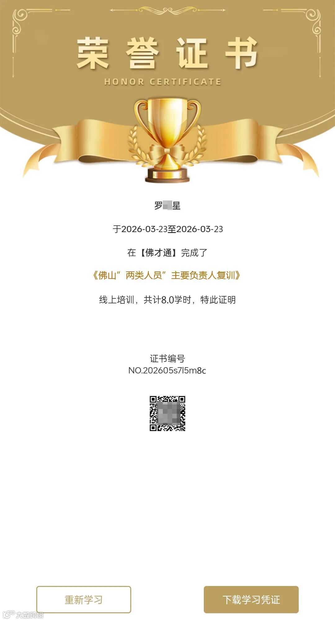 、2026年两类人员线上课程【新考证】学习凭证
