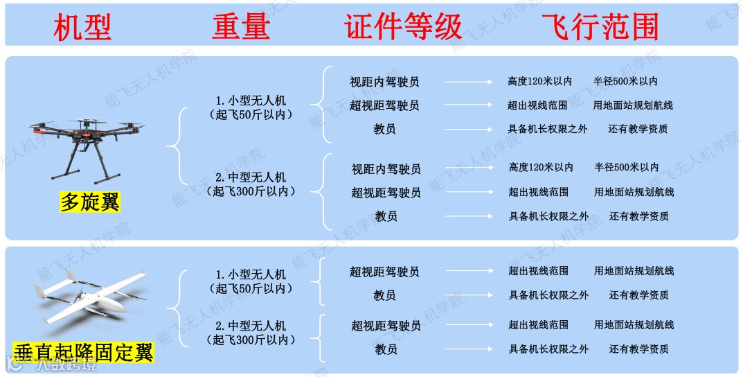 小型的执照不可以飞中型无人机,但是中型的执照可以飞小型无人机。