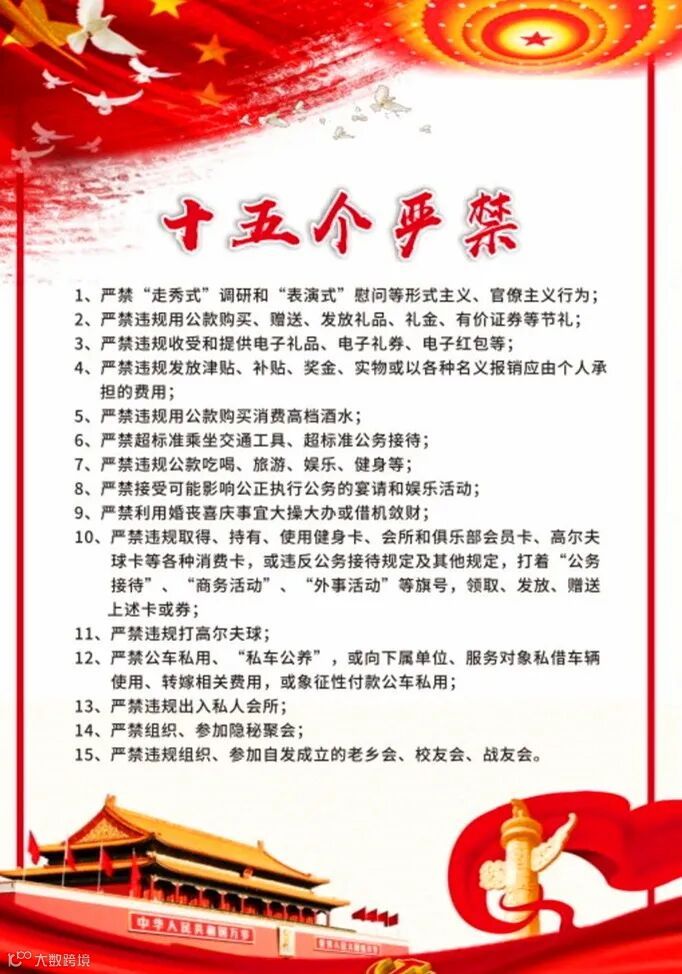 全体党员、干部职工要认真贯彻上级有关部署要求,进一步强化纪律意识和规矩意识,严格落实中央八项规定及其实施细则精神,要守“十五个严禁”纪律要求,不触底线红线。