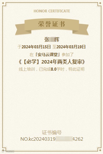 ②、必学2024年两类人员线上课程【复审】学时凭证