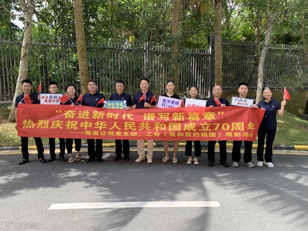 10月9日,海南公司党支部、工会开展“我和我的祖国”观影活动。下午,大家怀着激动的心情从公司一起出发前往影院,认真地看完了电影。观影后,大家心情久久不能平复,抚摸着手里的国旗,心中涌起自豪。