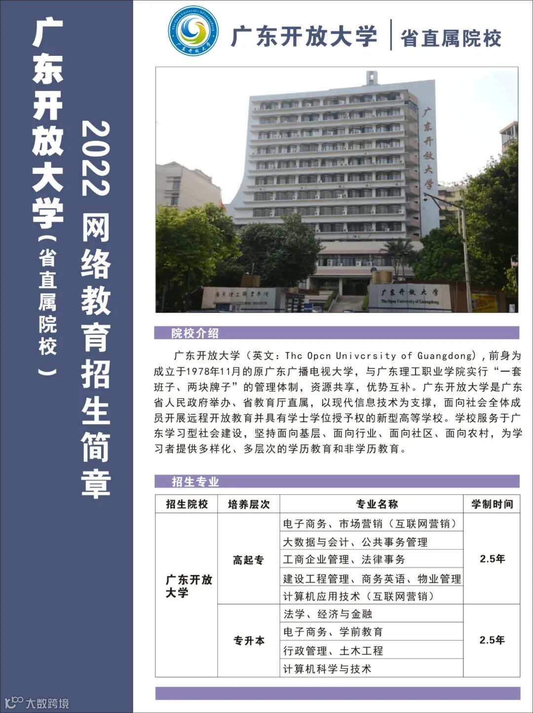 广东开放大学原为广东广播电视大学,与广东理工职业学院实行“一套班子、两块牌子”的管理体制,两所大学本着资源共享,优势互补进行办学。广东开放大学是广东省人民政府举办、省教育厅直属,以现代信息技术为支撑,面向社会全体成员开展远程开放教育并具有学士学位授予权的新型高等学校。学校服务于广东学习型社会建设,坚持面向基层、面向行业、面向社区、面向农村,为学习者提供多样化、多层次的学历教育和非学历教育。