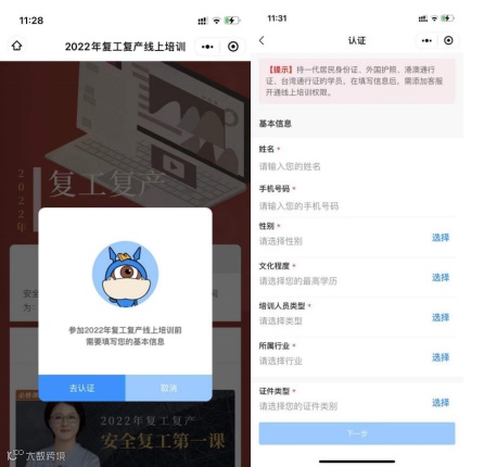 进入培训课程或资料下载详情页,需要完善个人资料。