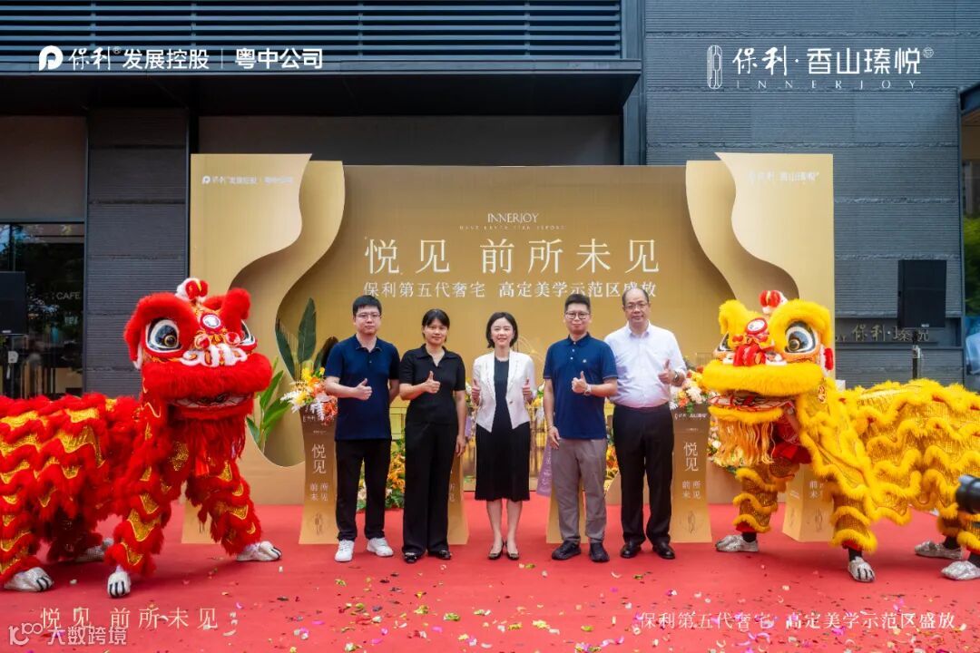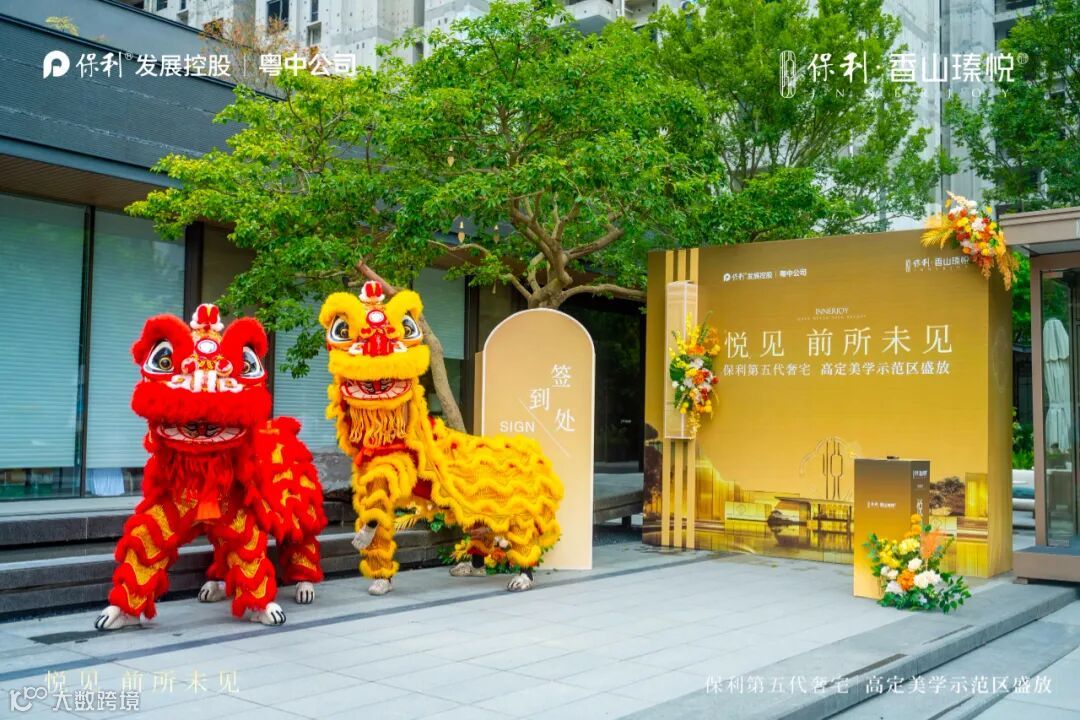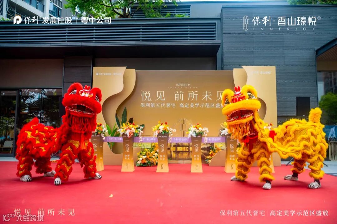 心潮澎湃的醒狮表演之后,盛典迎来了辉煌的高光时刻。随着多位领导联袂登台剪彩,保利香山瑧悦府「高定美学示范区」由此正式上映,澎湃中山人居想象。