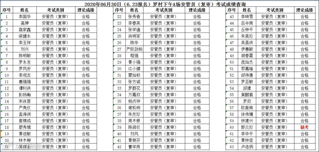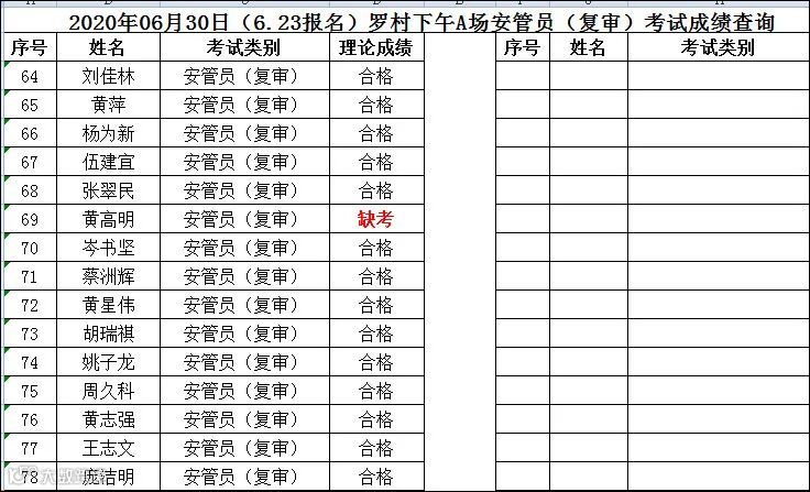 2020.06.30(6.23报名)罗村下午A场安管员复审考试成绩