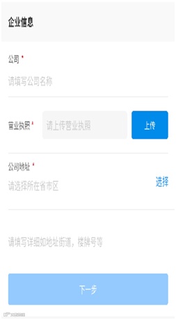第2步:企业信息认证(按页面要求每项填写公司信息后,按要求上传营业执照照片);