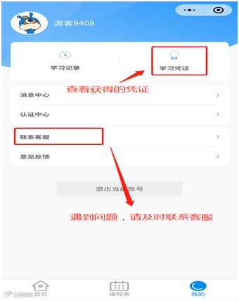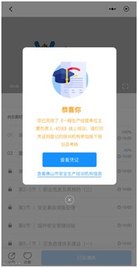 ★、在学习完成所有课时后,才能获得学习凭证。点击【查看凭证】或进入【我的】界面点击【学习凭证】按钮,可以查看已经获得的凭证,截图学习凭证后打印纸质版,在线下报名时与其他资料一起上交。