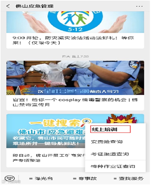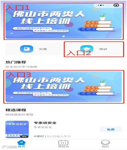 每③:可点击热门推荐版块的“佛山市两类人线上培训”图进入;