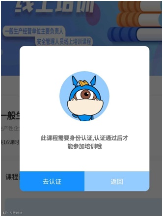 对应自己需要新考什么证,或者是需要复审什么证,然后点击相应证件的培训课程,之后会进入认证提示,点击【去认证】