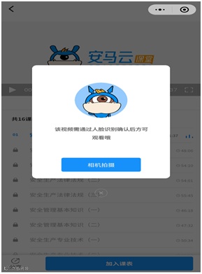 ★、在学习过程中系统会进行2次的人脸识别认证,如果不点击“相机拍摄”键进行刷脸认证,会停留在当前页面不会继续播放。