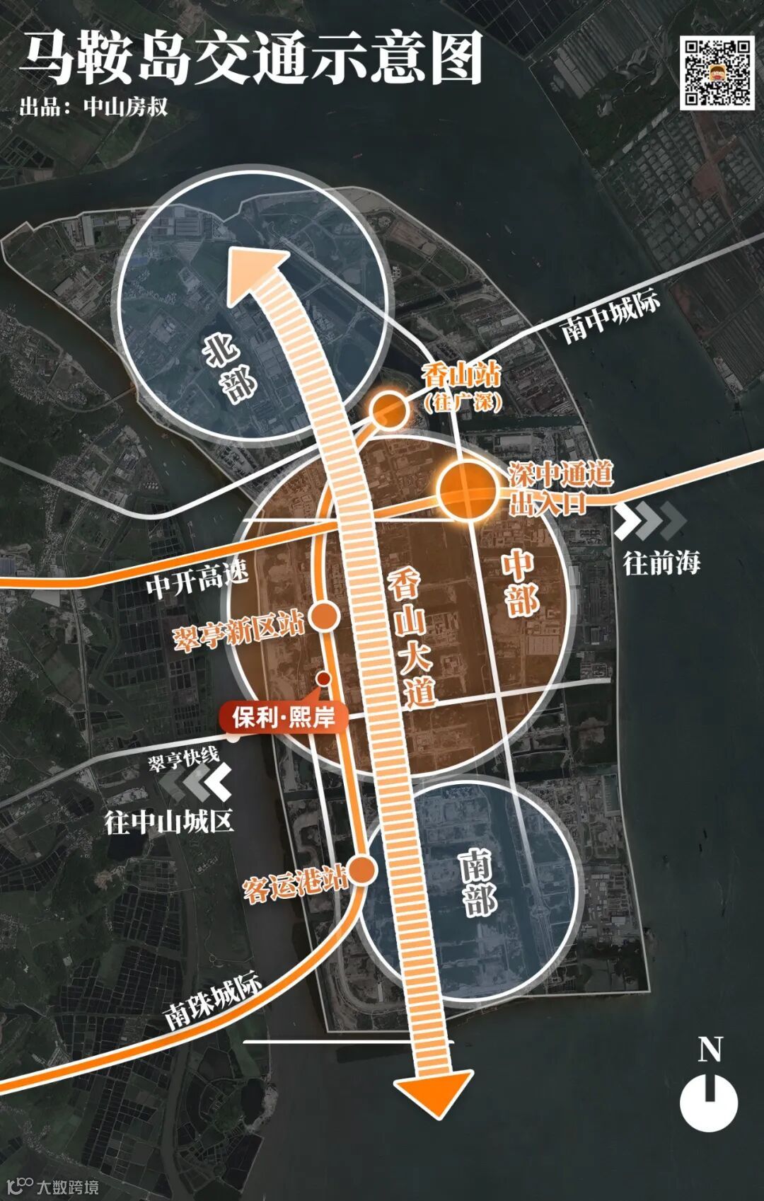 交通方面,备受关注的深中通道,第一出入口就在北部与中部交汇处,距离熙岸仅约2km。