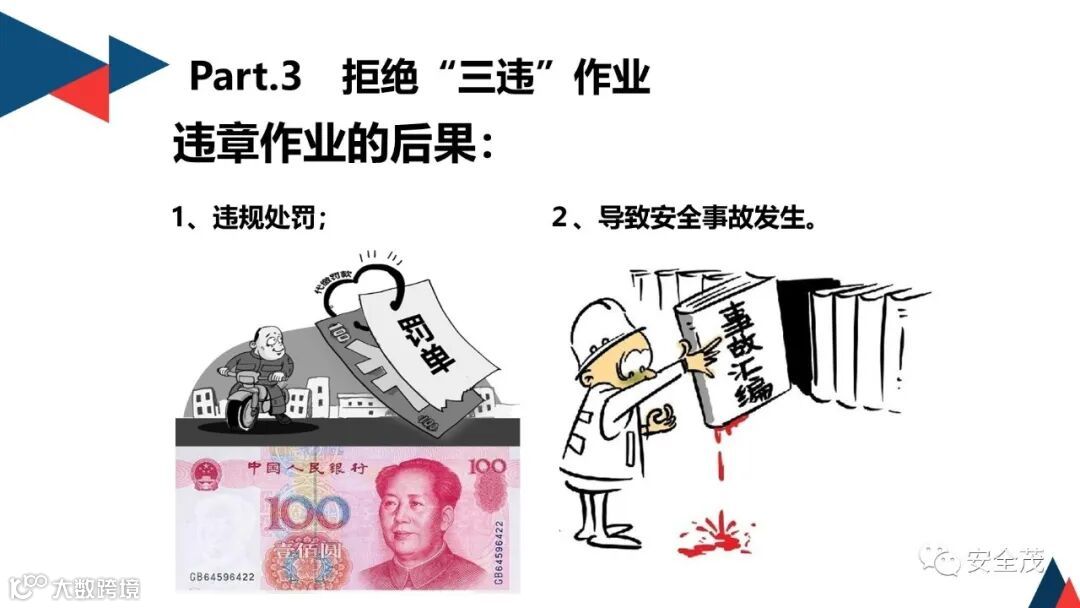 4、现场处置,主要方法有三种,即限期整改、禁止作业、处罚,这三种方法有时可以合并使用。
