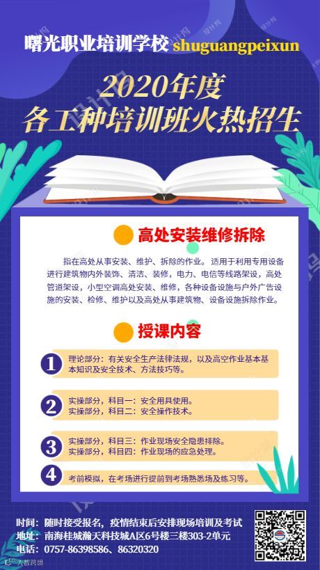 佛山市南海区曙光职业培训学校成立于2003年,是由南海区民政局、人力资源和社会保障局审批的专业培训机构,是集理论学习、实践操作和实际应用于一体的综合性职业培训学校,学校拥有一流的培训场地设施和师资队伍,开设有职业技能类、管理服务类、安全生产类等培训和课程,年培训规模超5000人次。