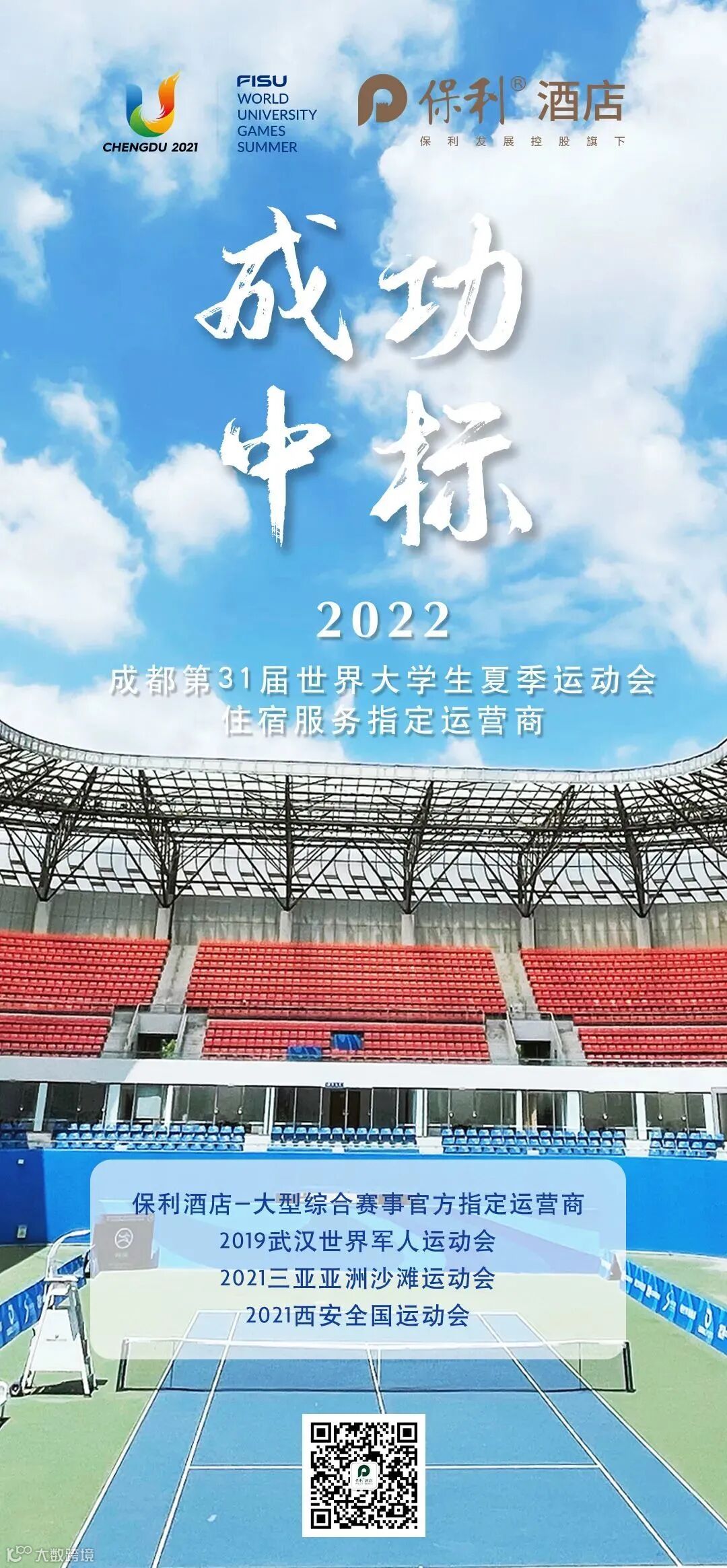 2022年6月26日至7月7日,第31届世界大学生夏季运动会将在成都举办。继服务第七届世界军人运动会、第十四届全国运动会等顶级赛事后,2月22日,保利发展旗下保利商旅公司(筹)酒店板块重磅官宣,成功荣任第31届世界大学生夏季运动会住宿服务指定运营商,将以一流水准和专业服务精神,构建大运会文体交流平台。